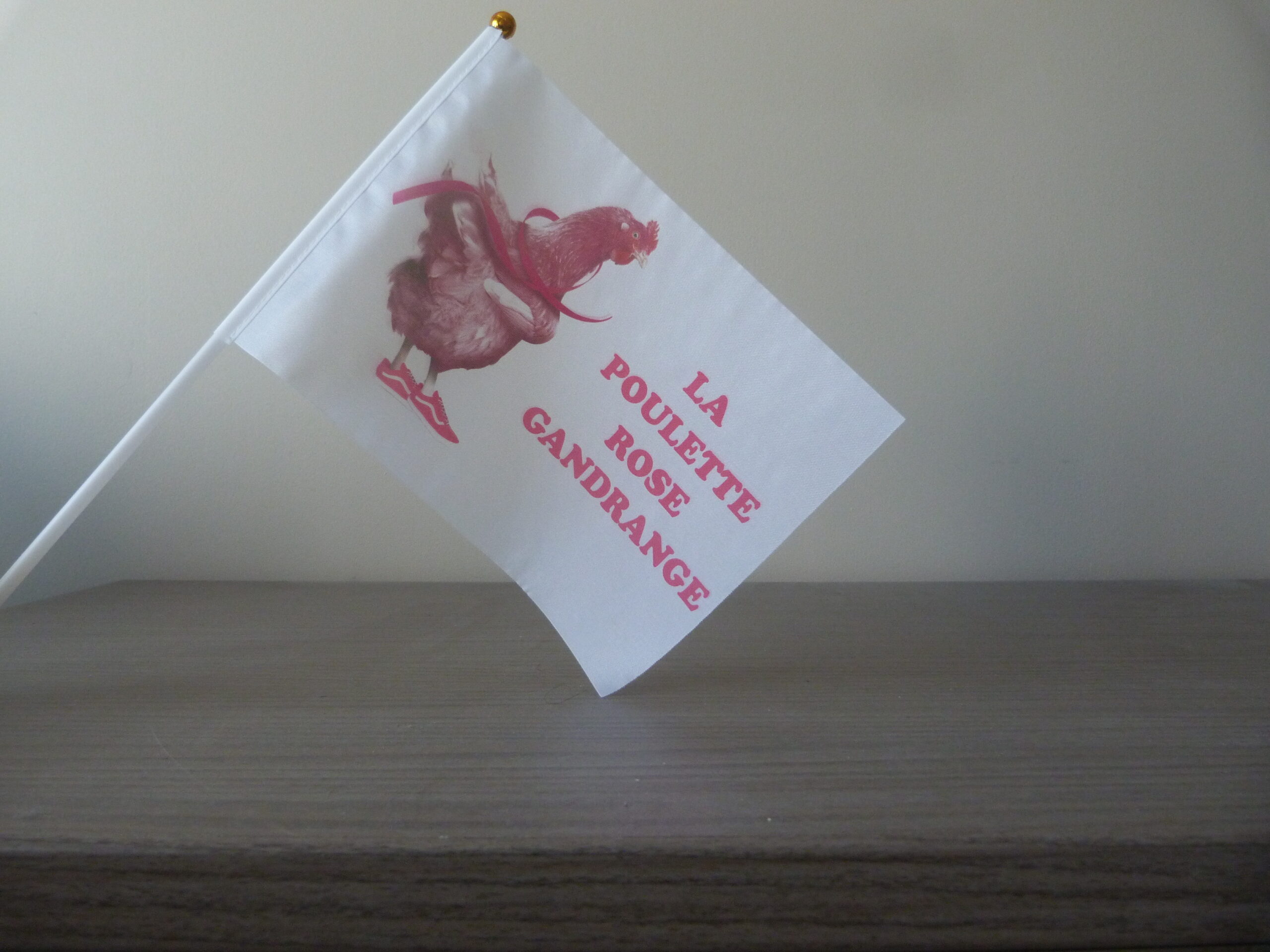 Ce mini drapeau est l’accessoire parfait pour mettre de l’ambiance et soutenir La Poulette Rose avec style !