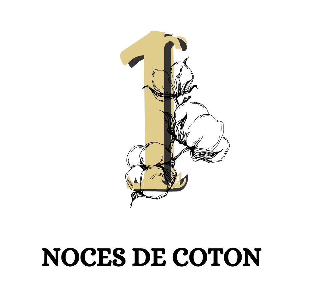 - Une petite légende en bas du design rappelle les noces fêtées (ex : « 1 an – Noces de Coton »).