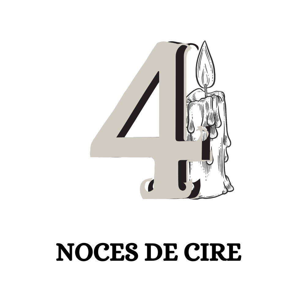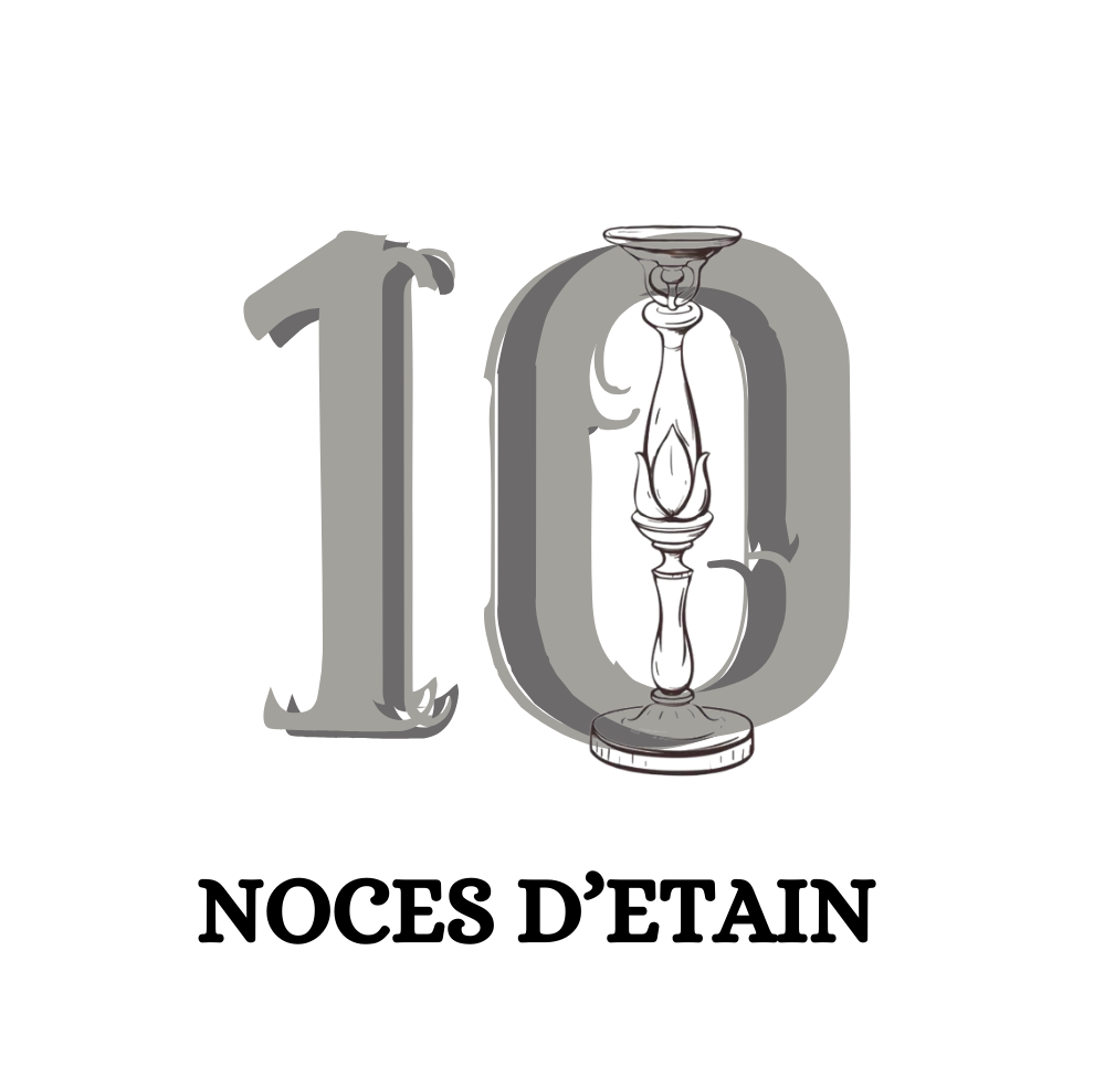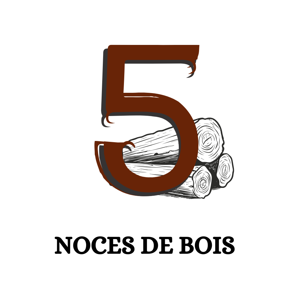 - Le chiffre représentant l’année de mariage est coloré dans les tons correspondant à la matière ou l’élément traditionnel associé à cette année (ex : coton, cuir, bois, or…).
