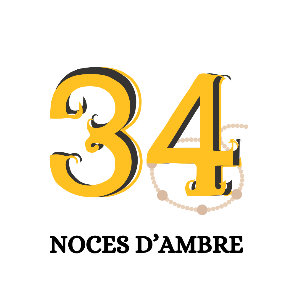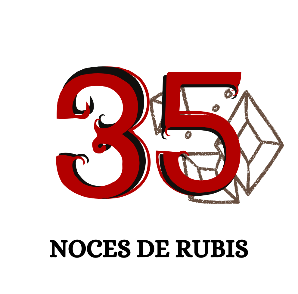 - Le chiffre représentant l’année de mariage est coloré dans les tons correspondant à la matière ou l’élément traditionnel associé à cette année (ex : coton, cuir, bois, or…).