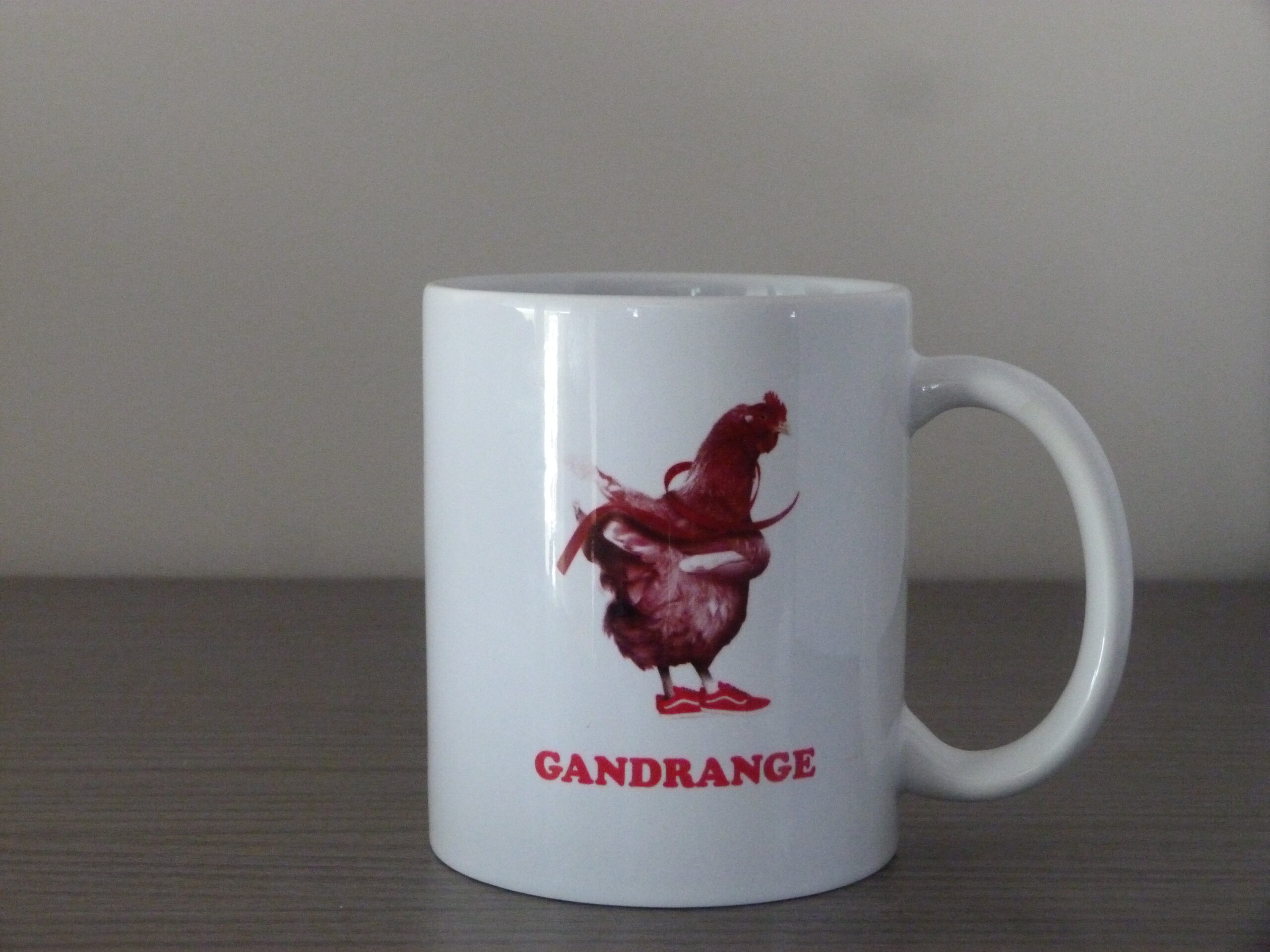 Sur le recto, on retrouve la mascotte emblématique de l’événement : une petite poulette rose chaussée de baskets, accompagnée de la mention « Gandrange ».